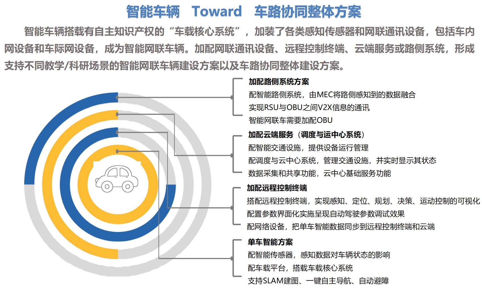 ▷ 车载核心系统通过V2X通信与智能路侧系统实时交互,实现车路协同感知与决策功能。