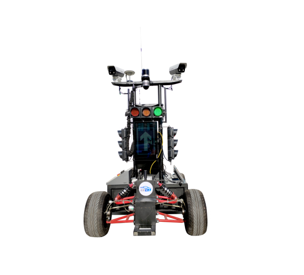 智能交通设施由交通灯及其控制设备、交通标志标牌、道路标志标线、车位道闸等,为方便管理,网络设备也归属到交通设施内。智能交通设施可以设置为固定式,即安装在路口的交通杆上,也可以与智能路侧设备、GNSS基站等一起组装为移动式,便于组织教学。