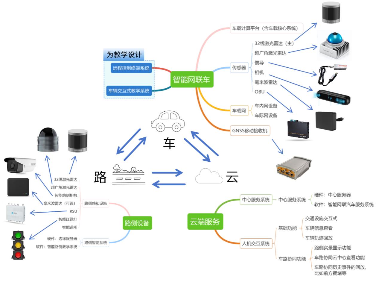 ● 智能交通设施涵盖智能信号灯、电子标牌等路侧设备。其核心功能是为教学场景提供真实的智能交通环境与服务,旨在支撑相关的实训与演示。